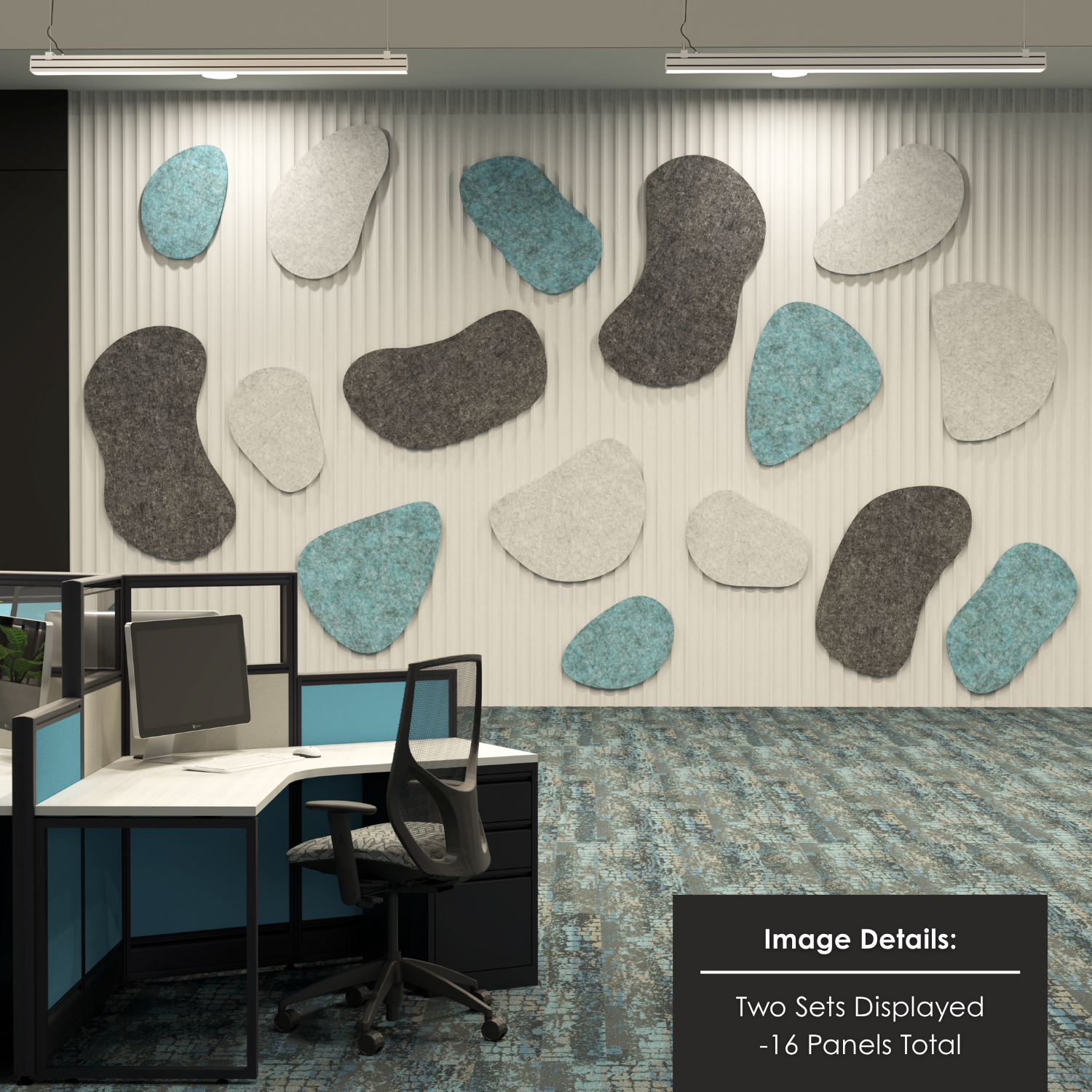 eSCAPE Series Pebbles Acoustic Wall Art | Set of 8 | 2 Color Options2-Person Cubicle Workstation | Laminate Gallery Panels | Sol Series | 6x6x52″-39″H