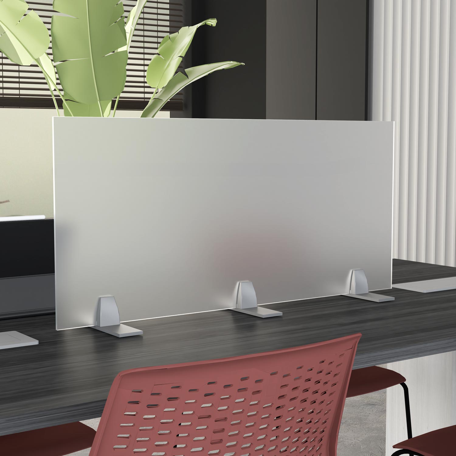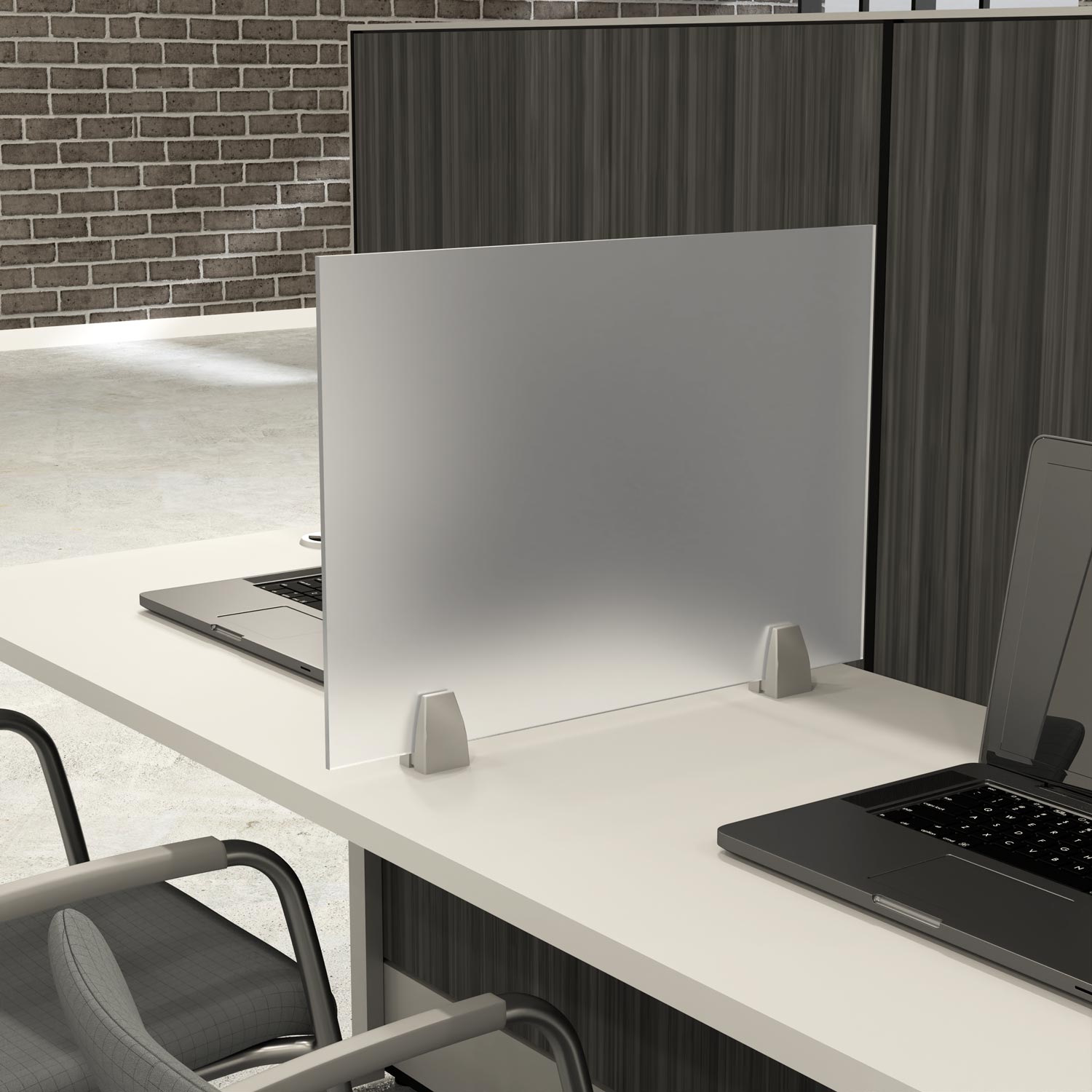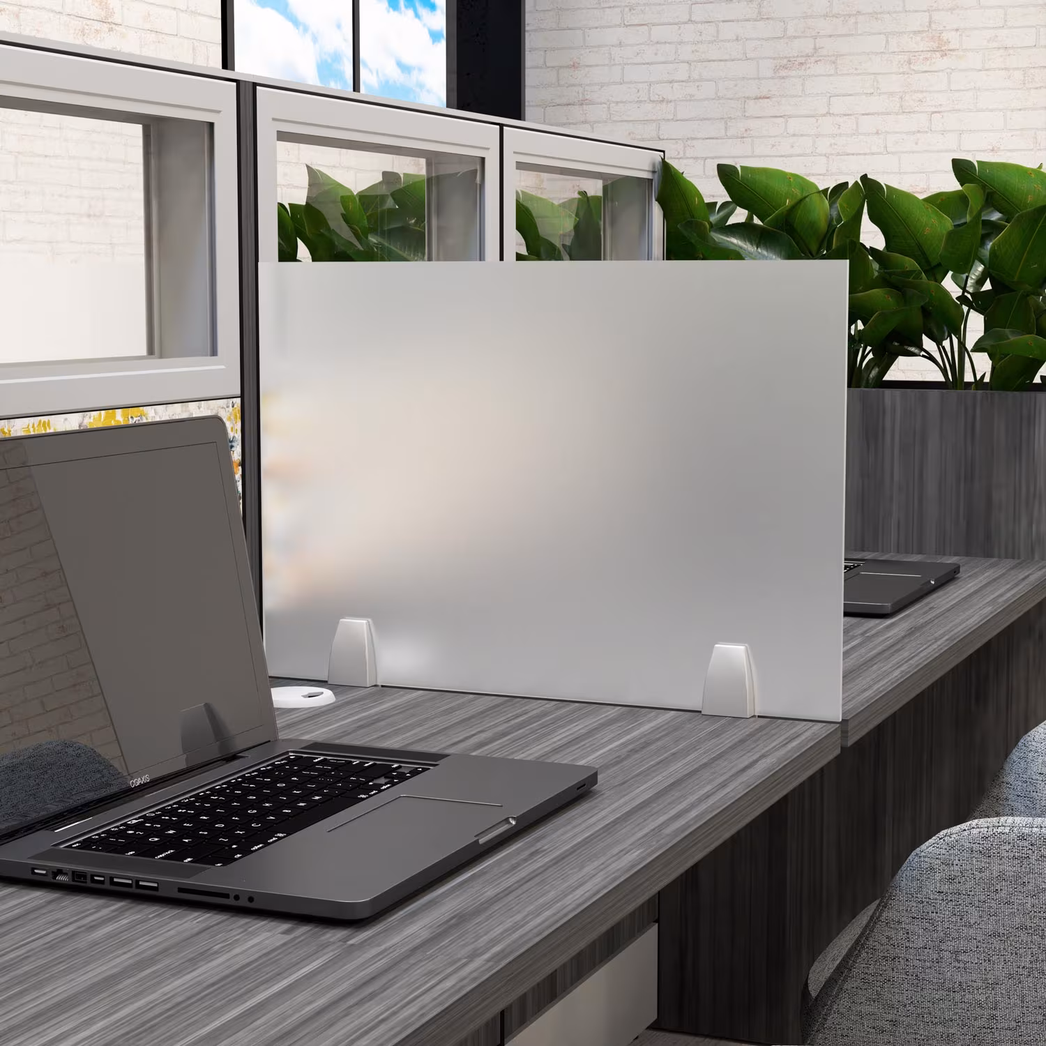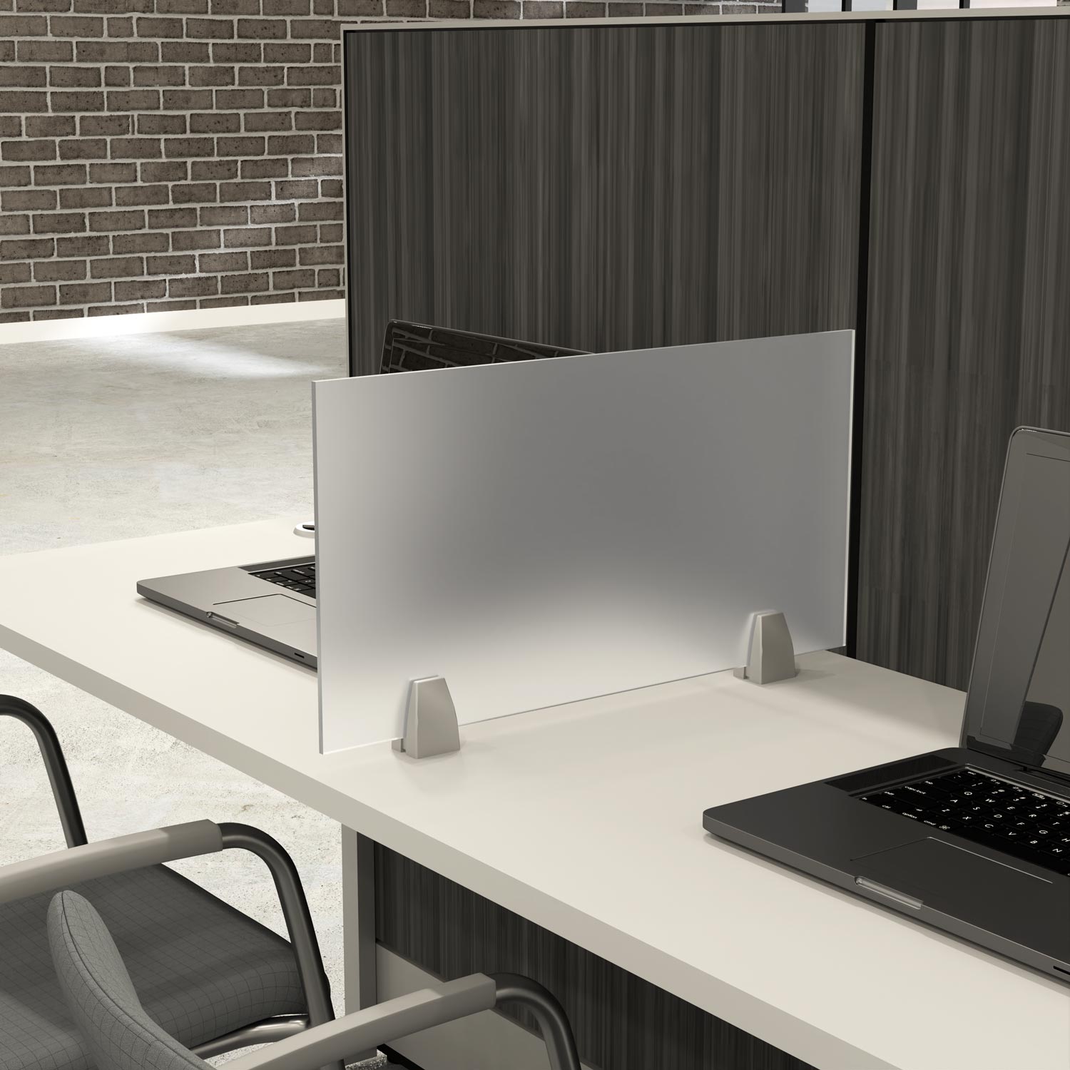 Clear or Frosted Acrylic Desk Dividers 16″ High | eSCAPE Privacy Solutions | 8 widths2-Person Cubicle Workstation | Laminate Gallery Panels | Sol Series | 6x6x52″-39″H