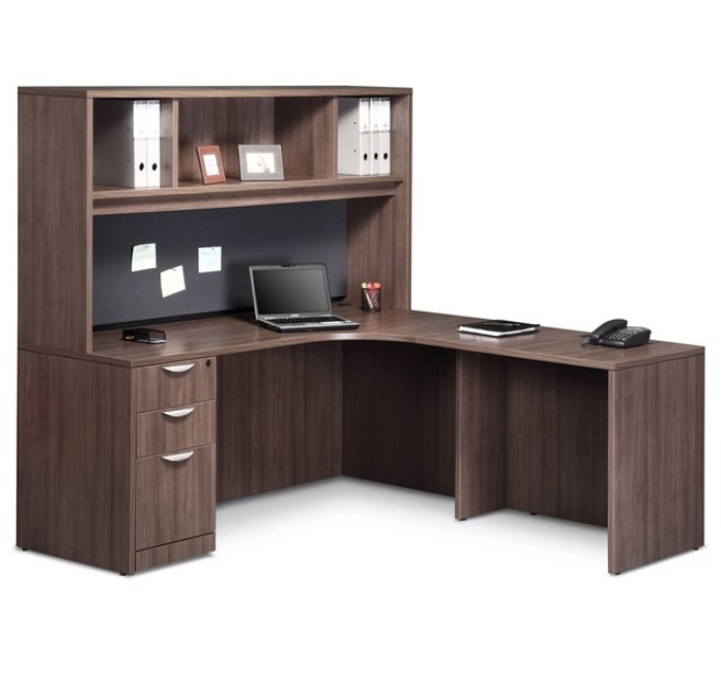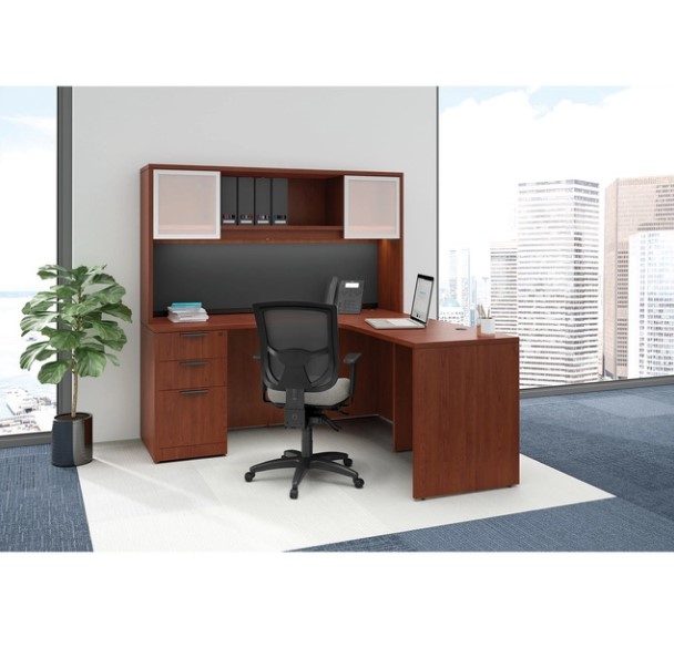 L-Shaped Office Suite | Laminate Desk With Storage | Hutch, Wardrobe and Under Desk Storage Cabinets | Sol Office Furniture2-Person Cubicle Workstation | Laminate Gallery Panels | Sol Series | 6x6x52″-39″H
