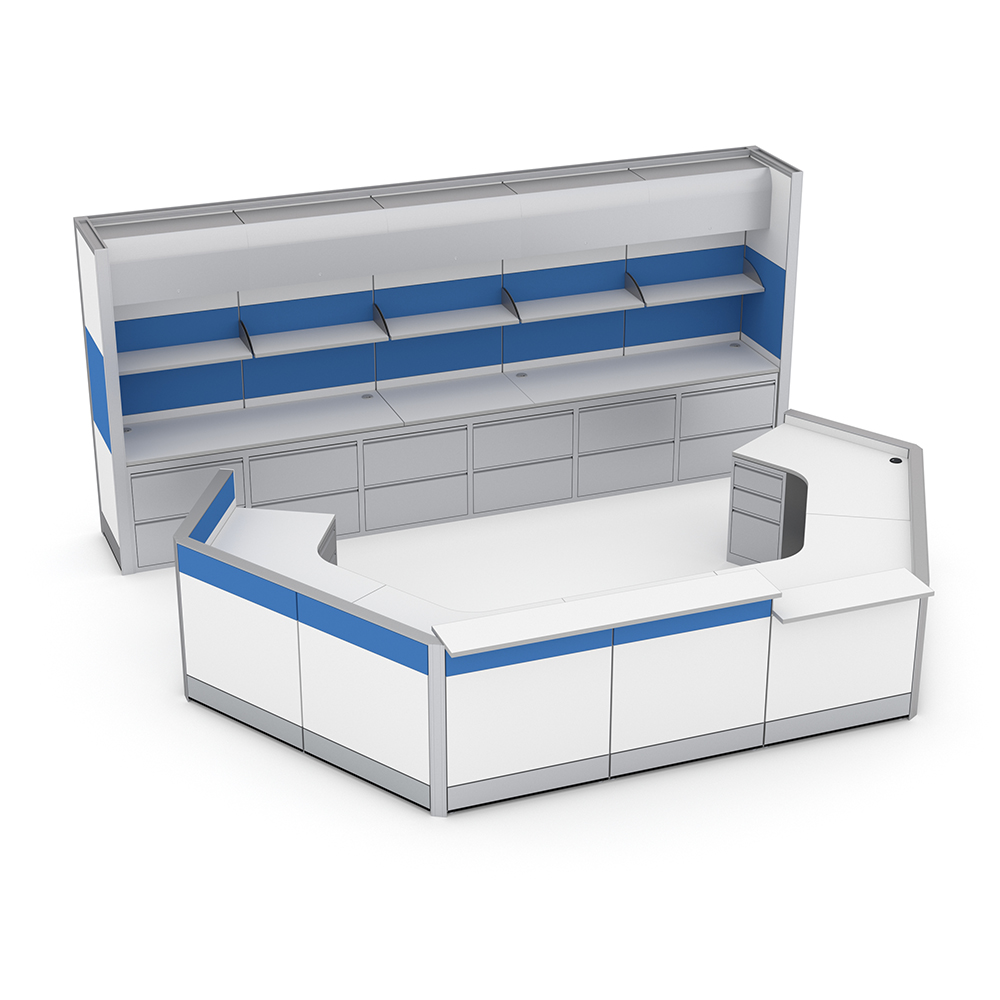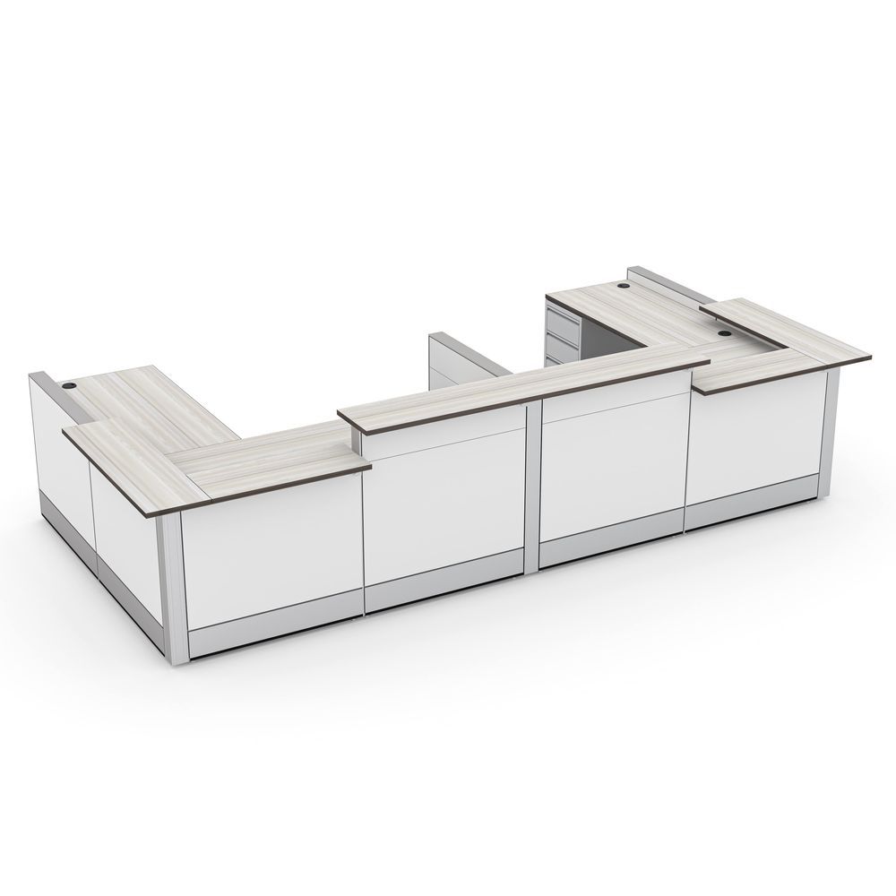 ADA Double Reception Counter Desk | Sapphire Cubicle System | 3x16x39″-32″H2-Person Cubicle Workstation | Laminate Gallery Panels | Sol Series | 6x6x52″-39″H