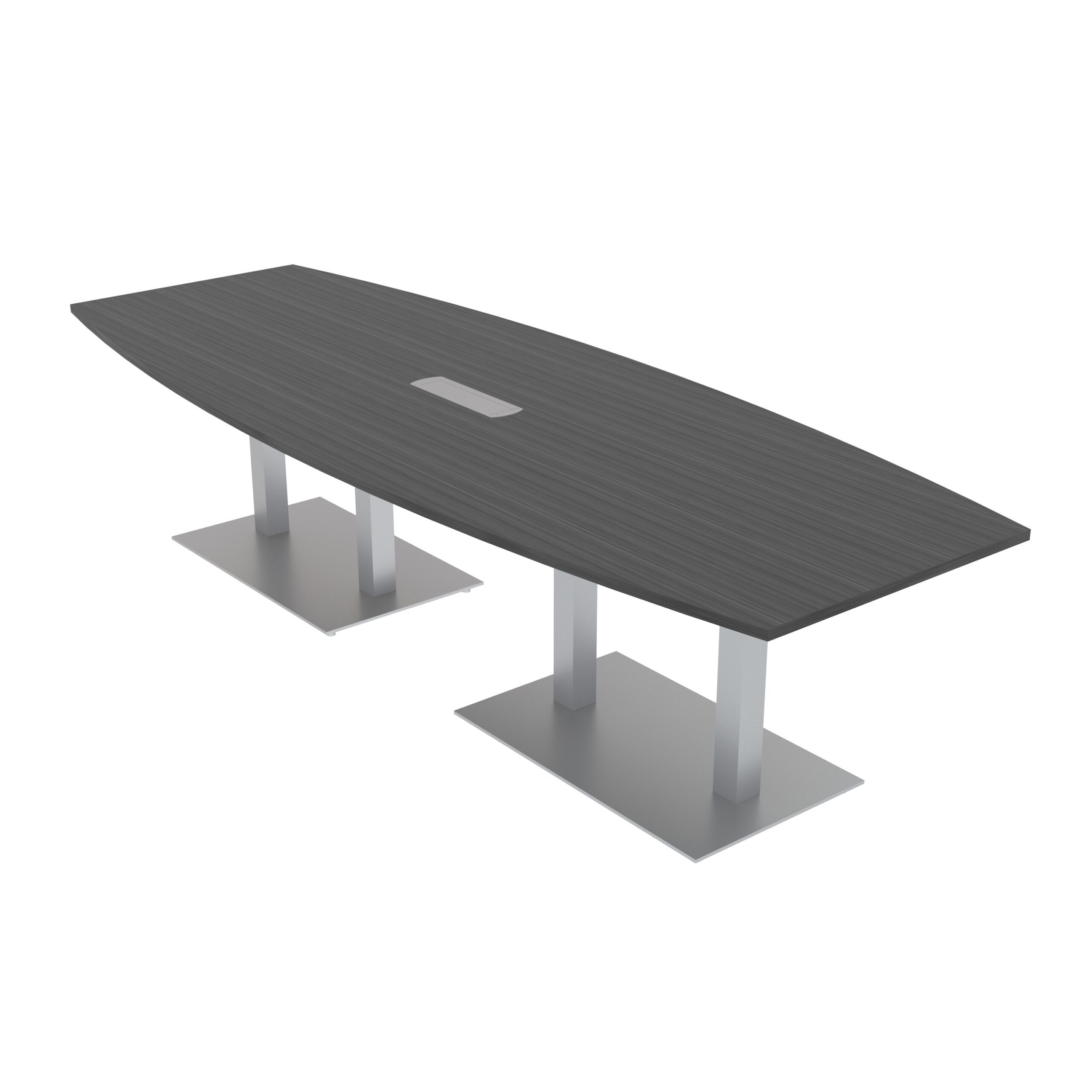 10-Person Boat Conference Table with Metal Bases | Harmony Conference Series | 10′ Table with Rotating Electrical Module2-Person Cubicle Workstation | Laminate Gallery Panels | Sol Series | 6x6x52″-39″H