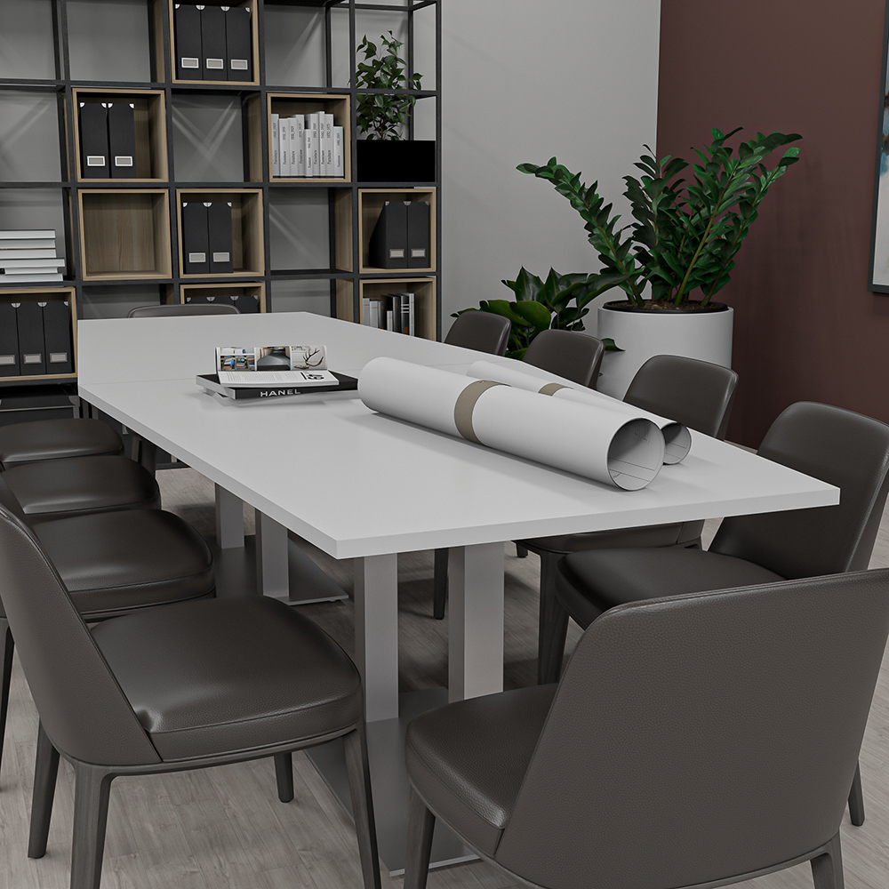 10-Person Rectangle Conference Table with Metal Bases | Harmony Conference Series | 10′ Rectangle Conference Table2-Person Cubicle Workstation | Laminate Gallery Panels | Sol Series | 6x6x52″-39″H