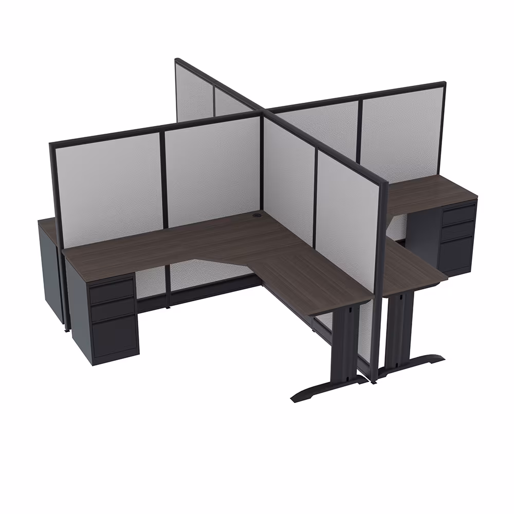 2-Person L-Shaped Cubicles | Emerald Collection | 5x7x39″H2-Person Cubicle Workstation | Laminate Gallery Panels | Sol Series | 6x6x52″-39″H