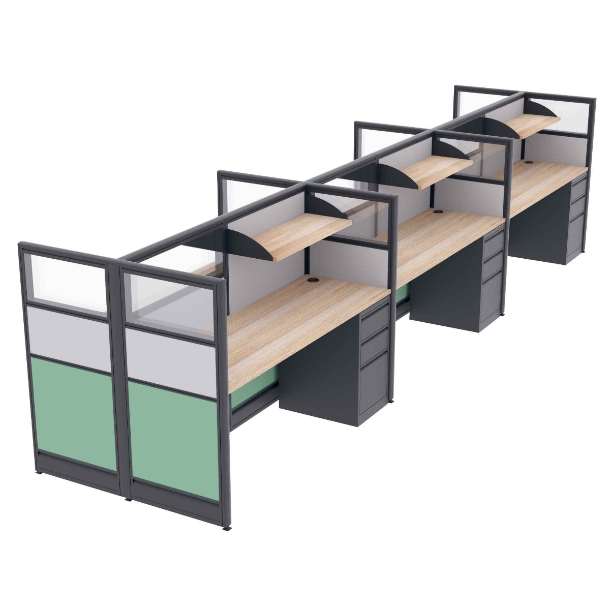 4-Person Call Center Cubicles | Emerald Collection | 3x6x65-52-39″H2-Person Cubicle Workstation | Laminate Gallery Panels | Sol Series | 6x6x52″-39″H
