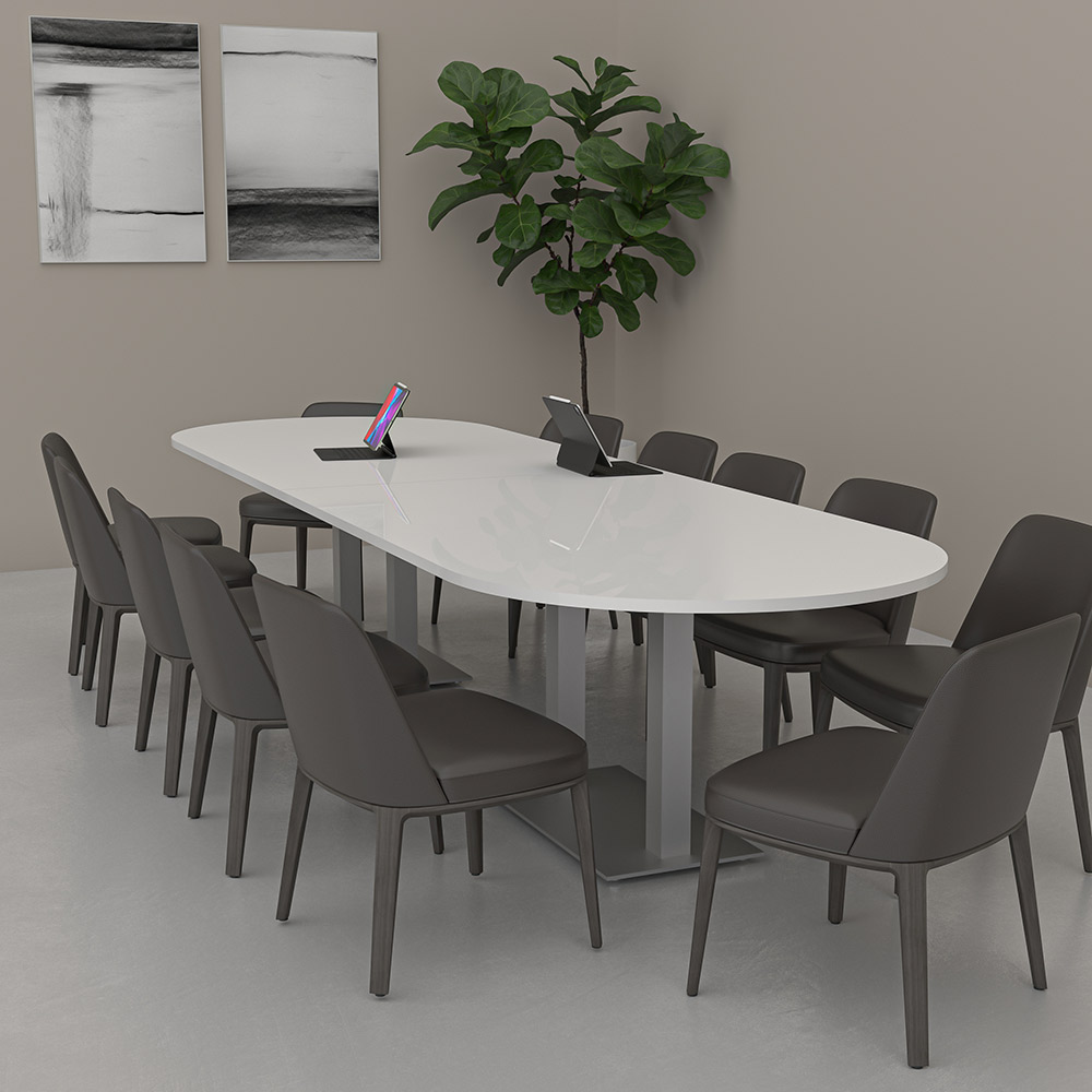 12 Person Boval Conference Table with Metal Post Legs | Harmony Conference Series | 12′2-Person Cubicle Workstation | Laminate Gallery Panels | Sol Series | 6x6x52″-39″H