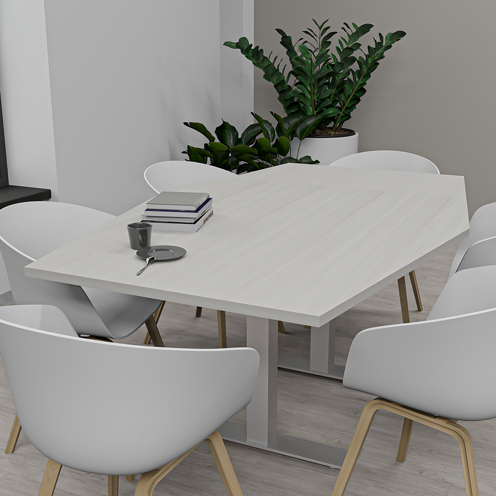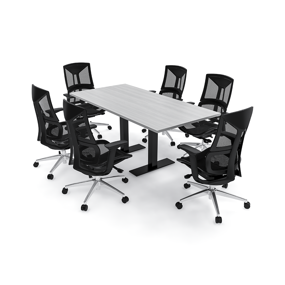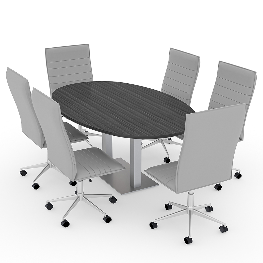 6 Person Conference Room Table And Chairs Bundle | 6′ Arc Boat Harmony Conference Series Meeting Table and 6 Ame Executive Chairs2-Person Cubicle Workstation | Laminate Gallery Panels | Sol Series | 6x6x52″-39″H