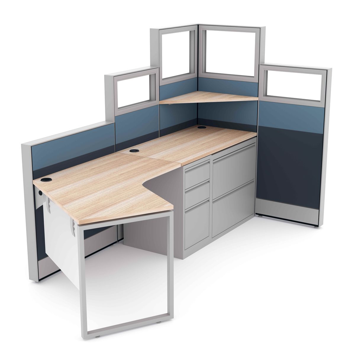 Corner Cubicle Workstation with File Cabinets | Sapphire Cubicle System | 3x4x65-52-39″H2-Person Cubicle Workstation | Laminate Gallery Panels | Sol Series | 6x6x52″-39″H