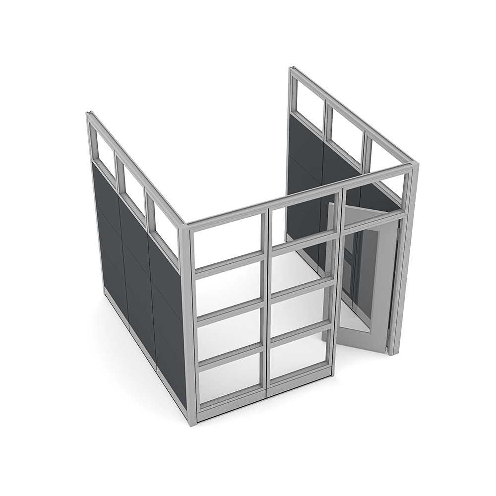 Modular Conference Room | De-Mountable Conference Room Walls | Sapphire Wall System | 12x15x95″H2-Person Cubicle Workstation | Laminate Gallery Panels | Sol Series | 6x6x52″-39″H