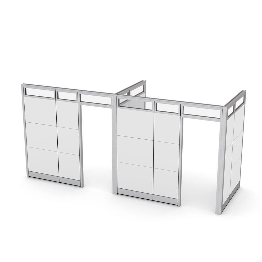 Modular Office Partition Walls | Sapphire Wall System | 3’W x 11’D x 95″H2-Person Cubicle Workstation | Laminate Gallery Panels | Sol Series | 6x6x52″-39″H