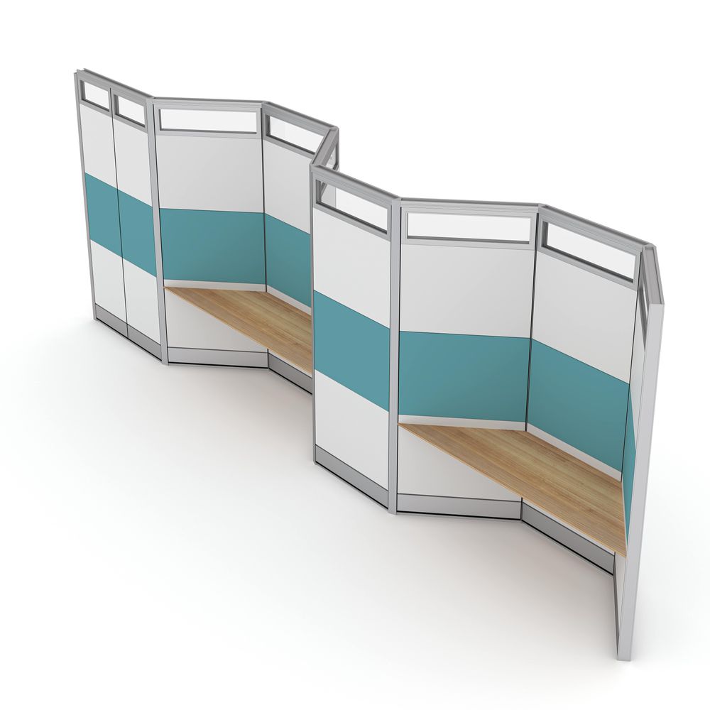Touchdown Spaces Divider Wall Workstations | Sapphire Wall System | 22x3x95″H2-Person Cubicle Workstation | Laminate Gallery Panels | Sol Series | 6x6x52″-39″H