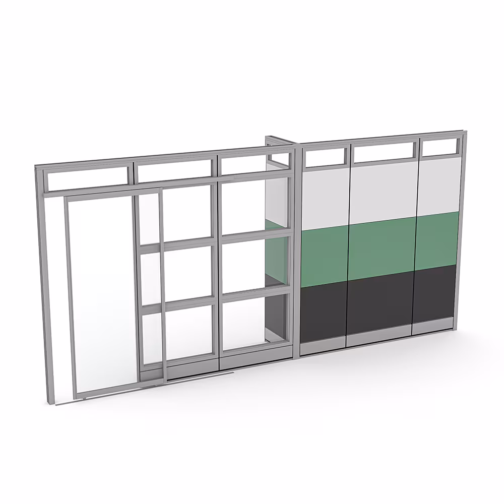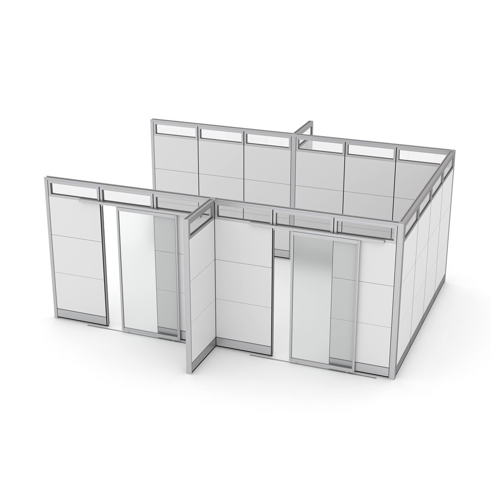 Dual Collaboration Room Partition | Sapphire Wall System | 16’Dx29’8″Wx95″H2-Person Cubicle Workstation | Laminate Gallery Panels | Sol Series | 6x6x52″-39″H