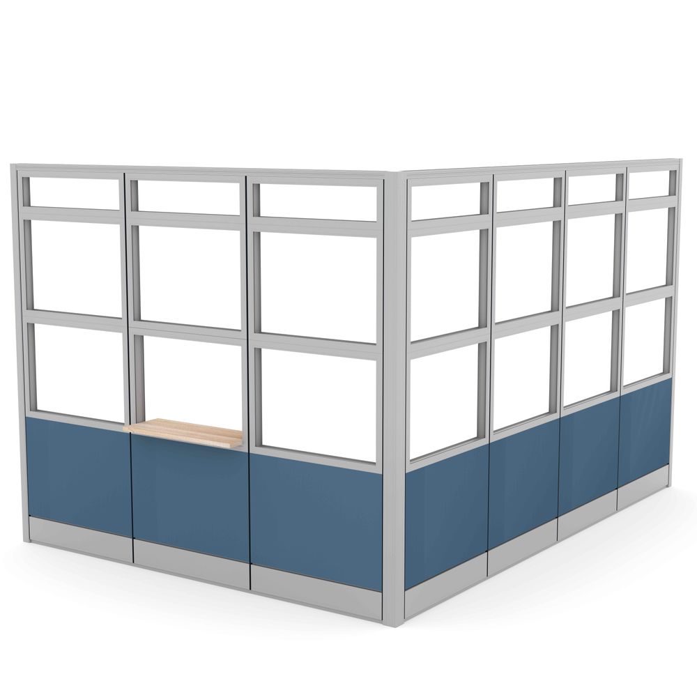Customer Service Office with Transaction Window | Sapphire Wall System | 9x12x95″H2-Person Cubicle Workstation | Laminate Gallery Panels | Sol Series | 6x6x52″-39″H