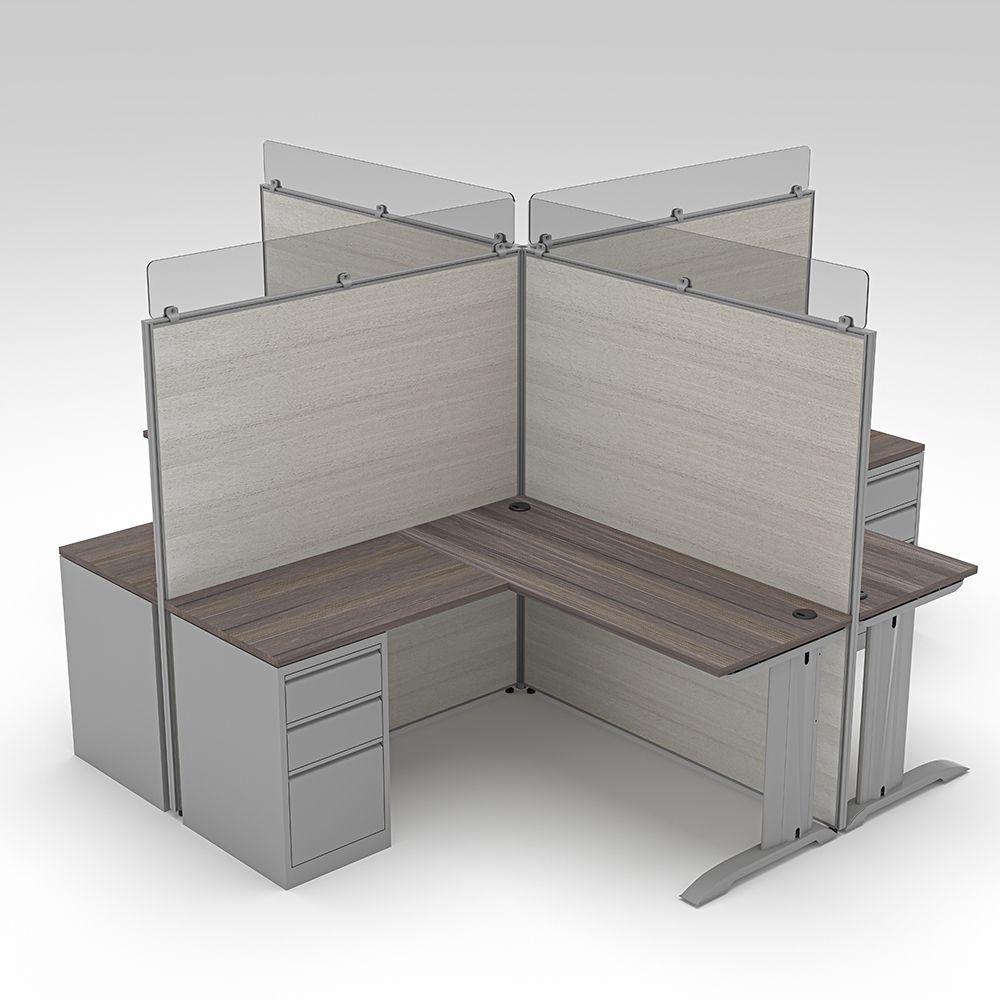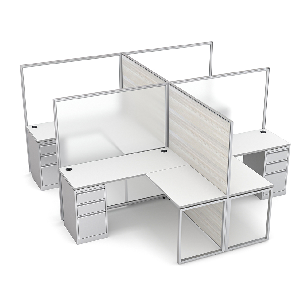 4-Person L-Shaped Cubicle Workstations | SAPslim Cubicle System | 5x5x65″H2-Person Cubicle Workstation | Laminate Gallery Panels | Sol Series | 6x6x52″-39″H