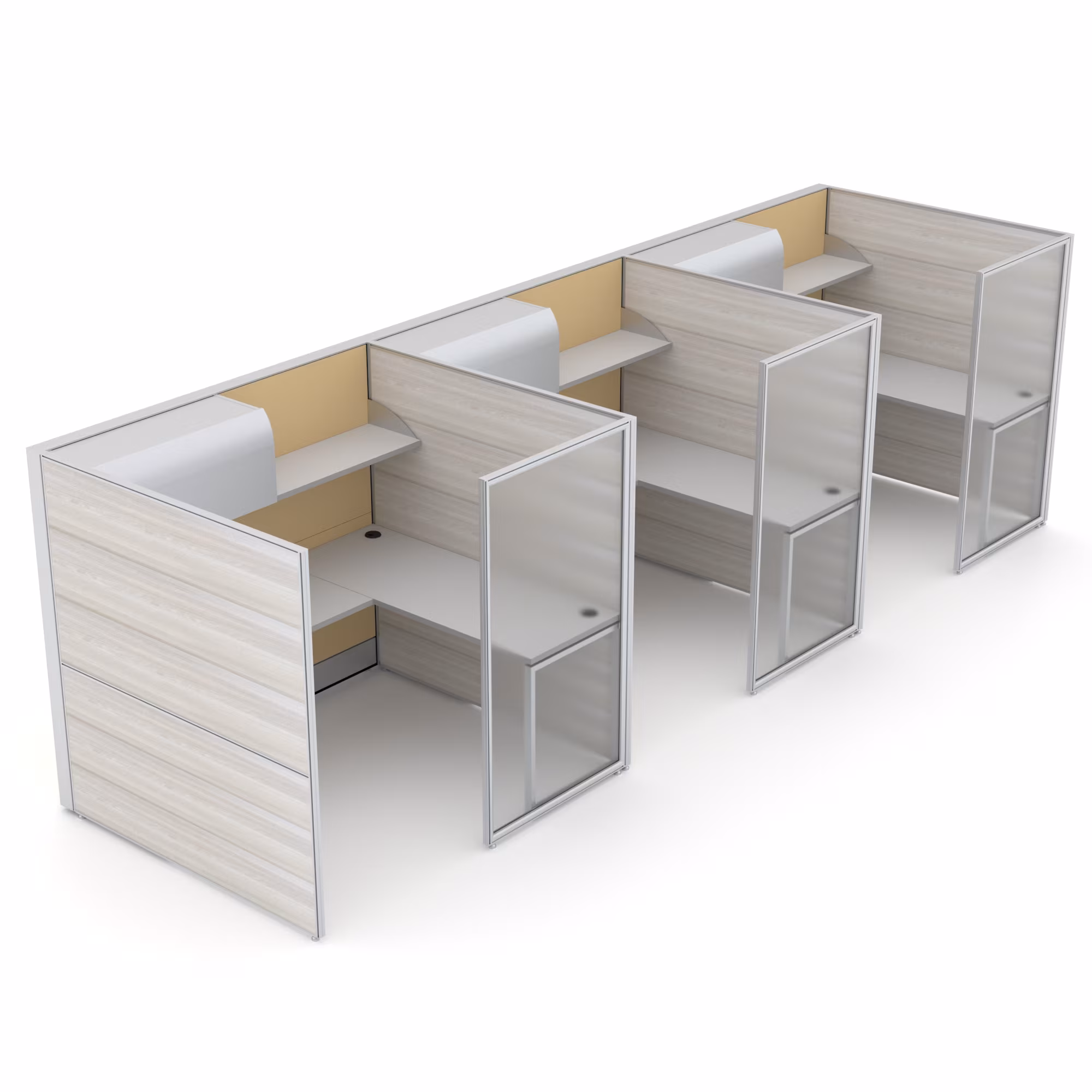 2-Person Cubicle Workstations and Partitions | SAPslim Cubicle Collection | 4 x 4 x 65″H2-Person Cubicle Workstation | Laminate Gallery Panels | Sol Series | 6x6x52″-39″H