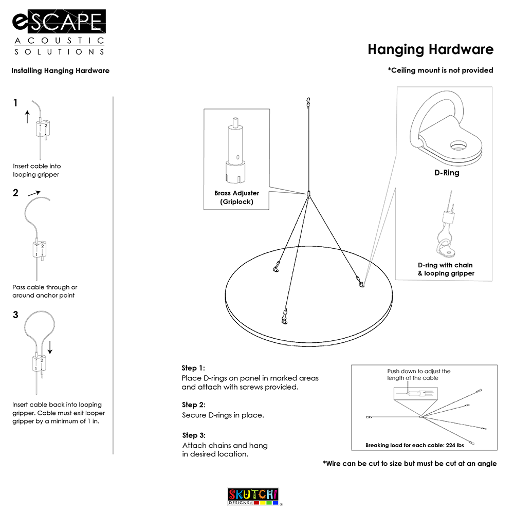 The lightweight PET construction makes installation simple, while the durable material resists warping and discoloration over time. Designed to be suspended from most standard ceiling systems, these panels can hang at varying heights for a sculptural effect or be integrated into larger modular installations alongside other eSCAPE ceiling elements.