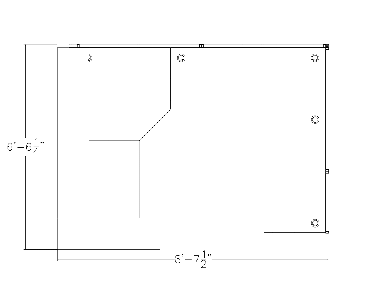 - Overall Footprint Size: 8’7.5″W x 6’6″D x 65″-39″H