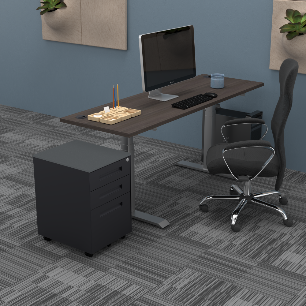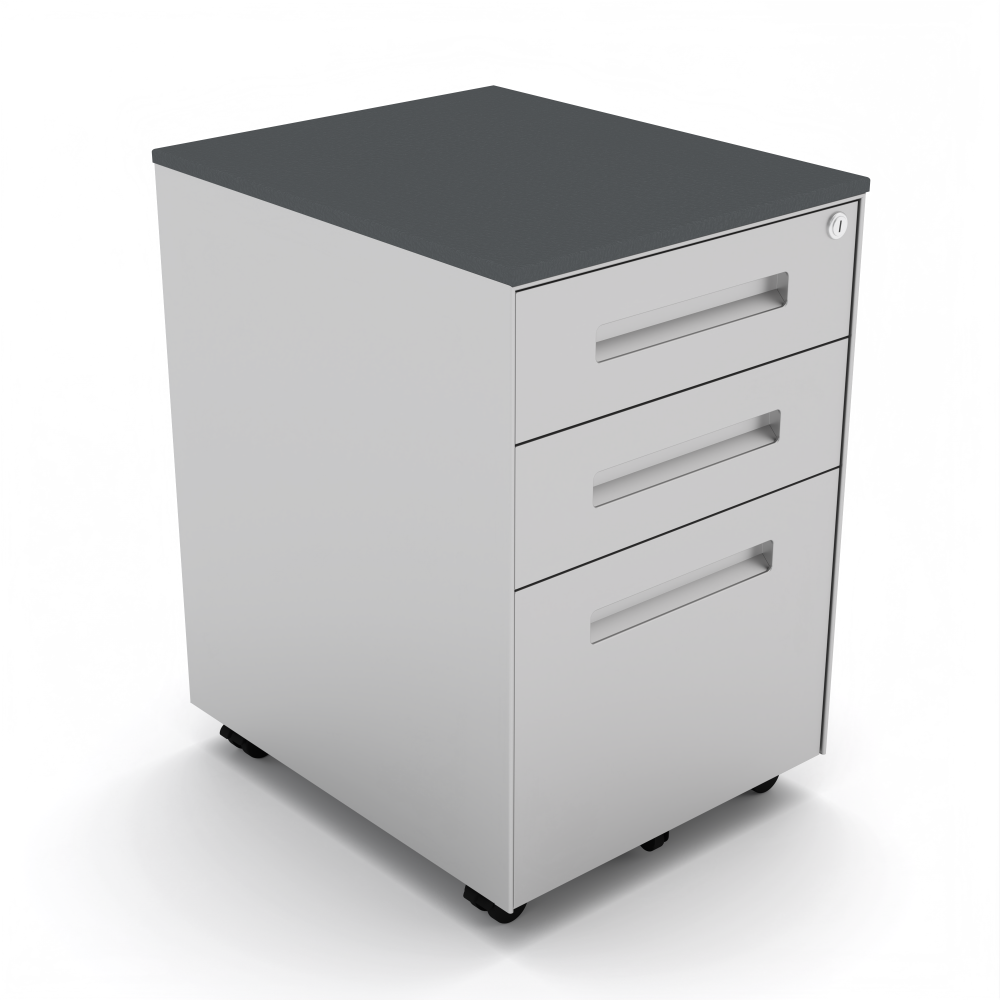 It’s available in two different colors; a dark, charcoal gray or silver. Its overall dimensions are just over 23 3/4″ tall, 18 13/16″ deep, and 15 3/4″ wide. Above all, this mobile storage pedestal cabinet makes for a sensible and functional addition to any office or workspace. For more information contact our professional office design specialists at SKUTCHI Designs Inc. for more information. 1-888-993-3757.