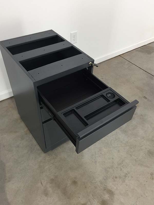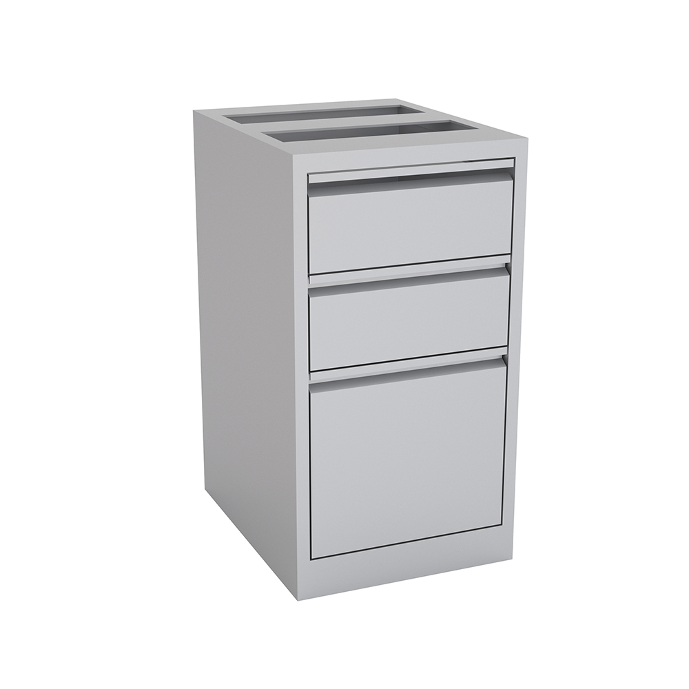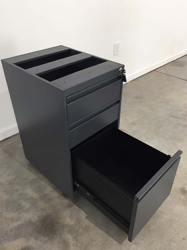 The Skutchi Designs pedestal features box and file drawers that have full depth and smooth riding ball bearing suspensions. Available in Silver and Charcoal to match with your cubicle system. Open top, meant to be mounted under a worksurface.