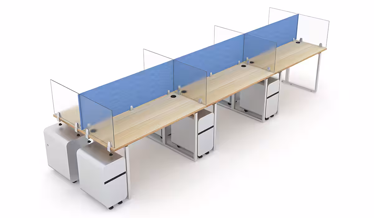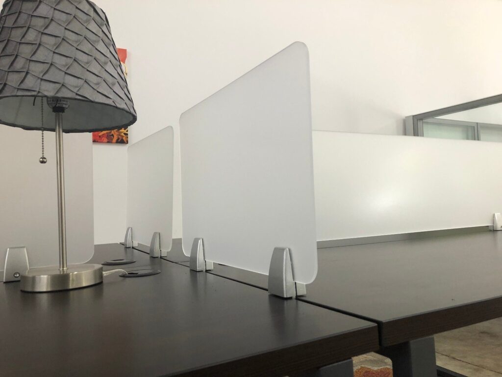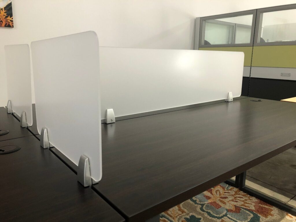 Acrylic Desk Screens – Our acrylic desk screens are made specifically to increase the spatial and visual privacy for every person seated. These panels are firmly secured in place with three different types of panel clamps. Acrylic panels are available in heights of 12″, 16″ and 18″. Custom shapes and sizes can be produced upon request.
