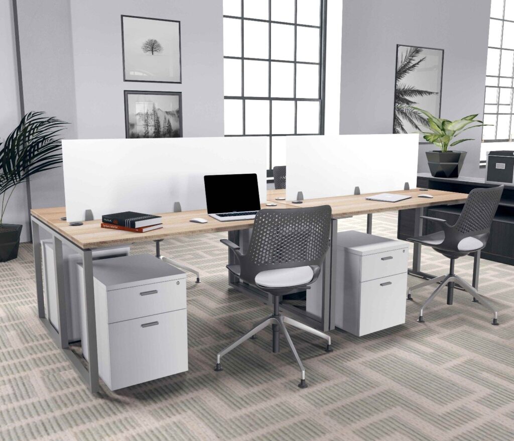 The Nova Desking System allows you to combine laminated worksurfaces, steel tubing “box” legs, desktop screens, drawer/filing cabinets, and other desking accessories all in one affordable package.