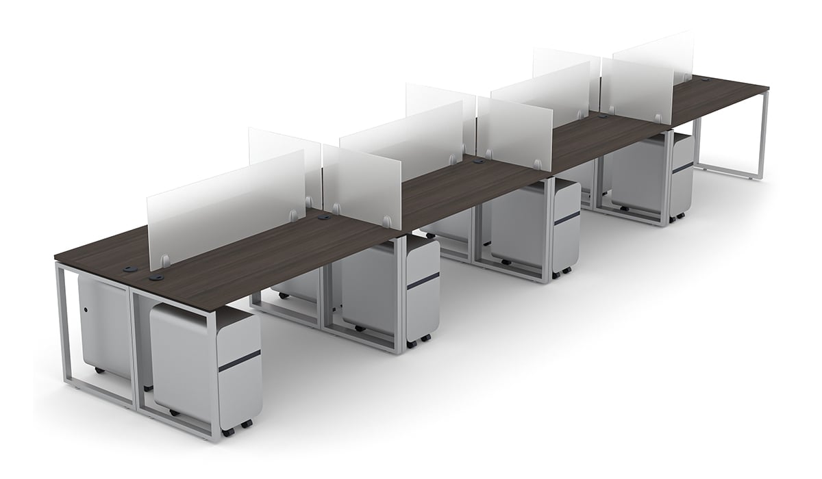 Each individual desk in the Nova Desking System™ is made to be a part of a whole group. You can add to the number of desks as needed, rearrange or divide them into smaller or larger groups, or create pods of desks separated by demountable desk divider panels.