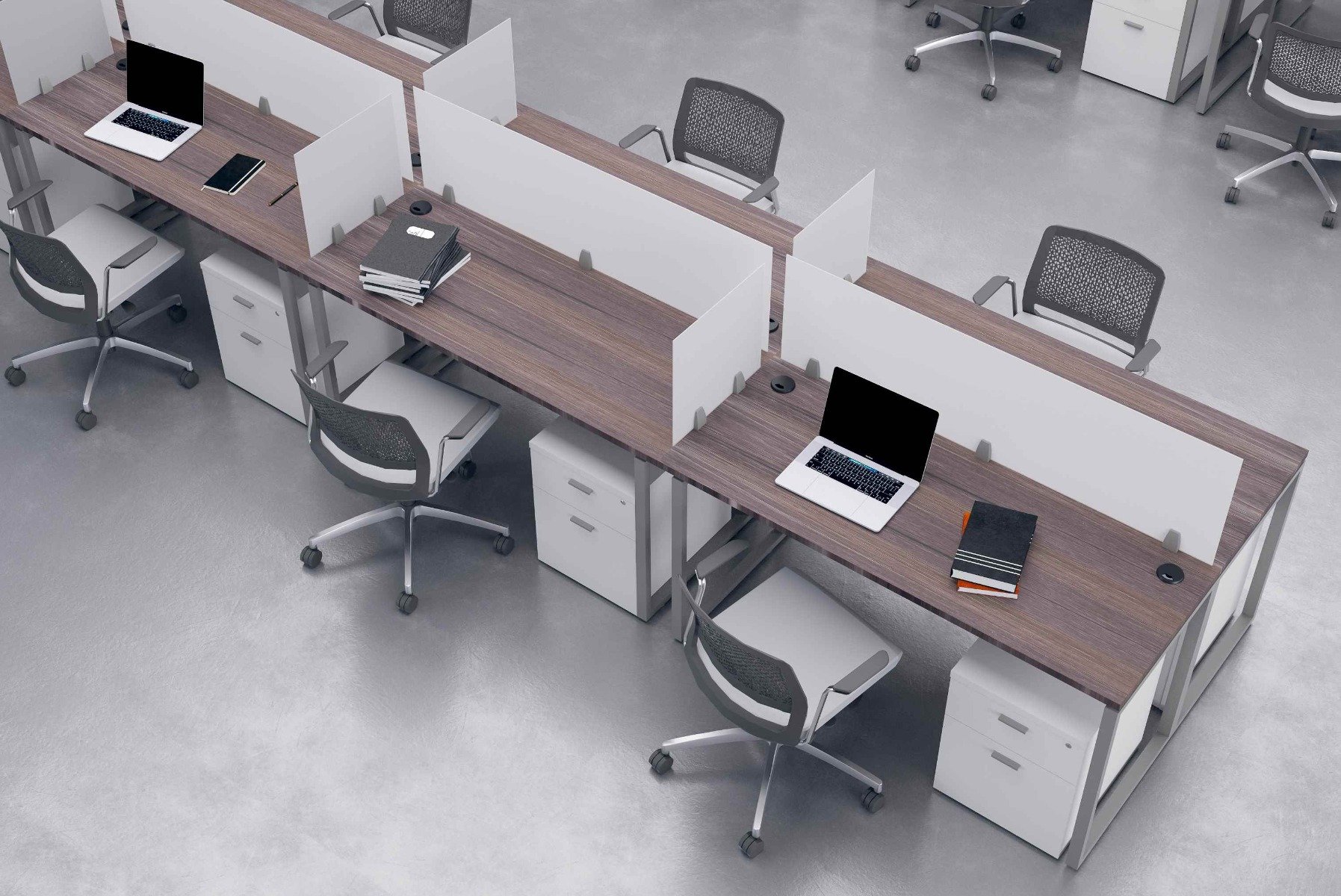 Each individual desk in the Nova Desking System™ is made to be a part of a whole group. You can add to the number of desks as needed, rearrange or divide them into smaller or larger groups, or create pods of desks separated by demountable desk divider panels.