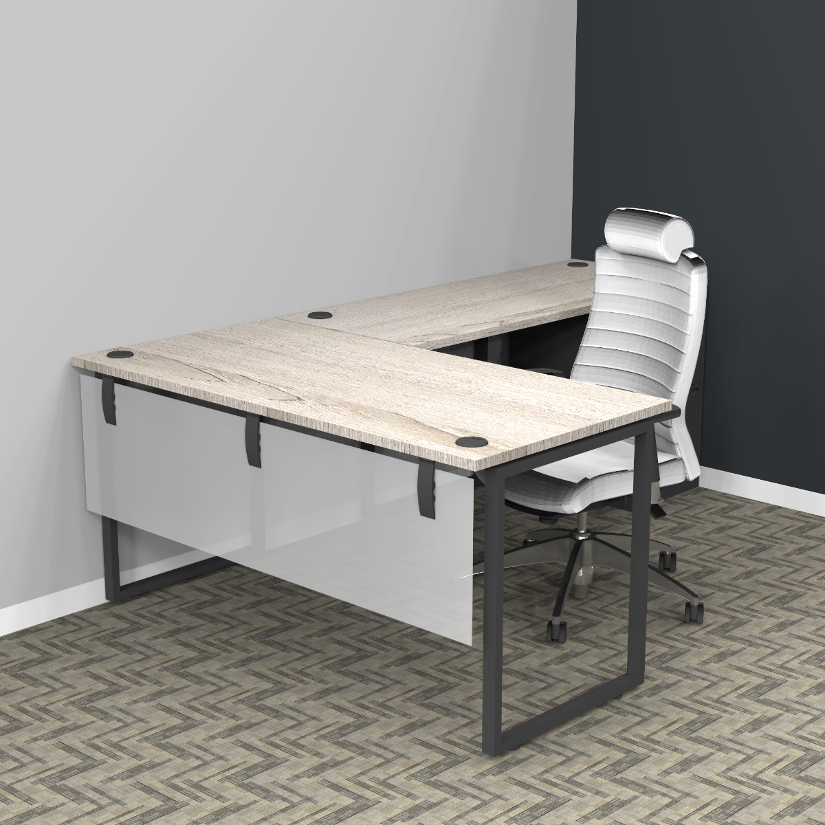 Strong and durable. All steel “box” legs give each desk firm foundation without sacrificing leg room. All desks are made with our standard, 1″ thick thermally-fused laminate surfaces. You choose what color/pattern of worksurface you’d prefer.