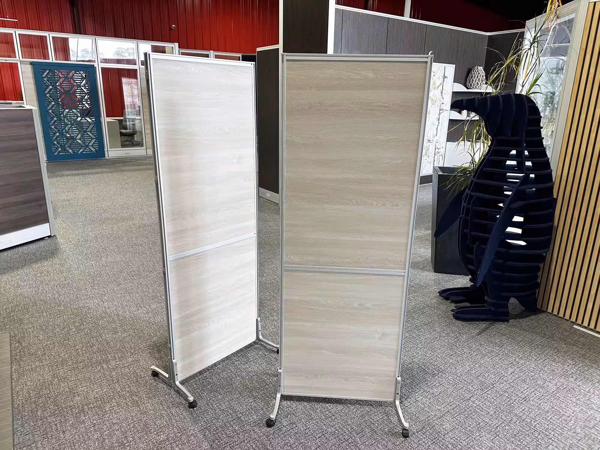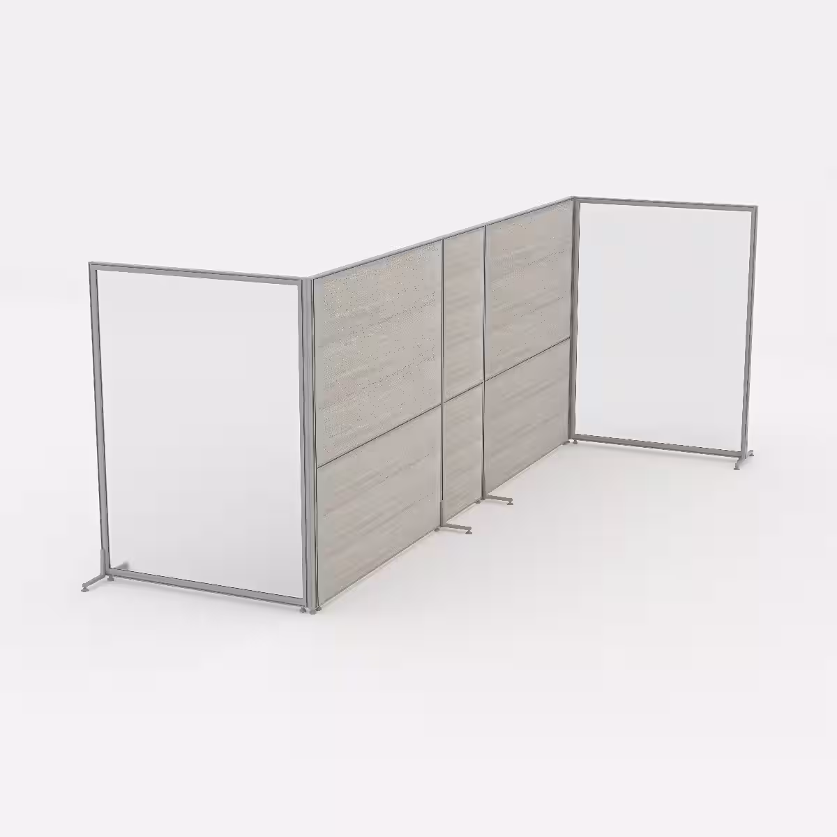 These panels can be configured in any number of ways. You can use them to create simple one-panel room dividers or complex multi-person workstations. These panels are freestanding and require no attachment to walls, floors, or ceilings. Additionally, wheels/casters can be added to the base to create mobile divider walls to be used in more than one area of your workplace.