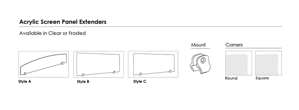 - Acrylic Screen Panel Extenders – If the 65″ height is not tall enough for your needs, clear or frosted acrylic panel extenders can be added.