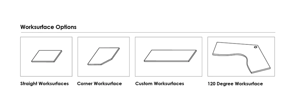 - Worksurface Options – Choose from four different shapes (of various sizes) for the worksurface of your choice with up to 10 different laminate options.