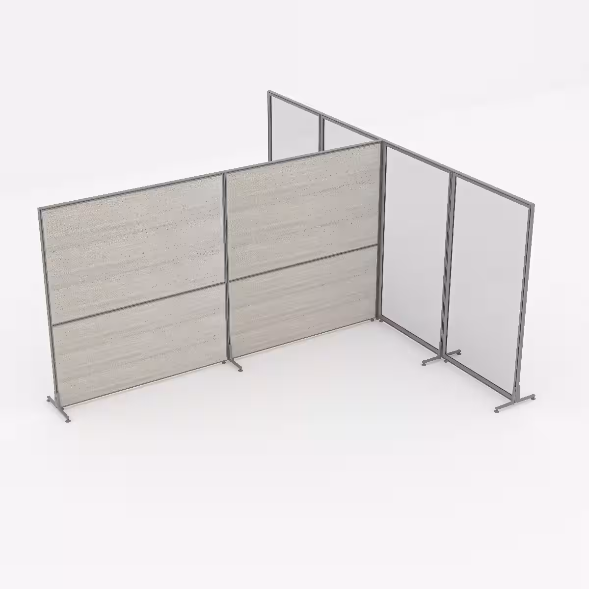 These panels can be configured in any number of ways. You can use them to create simple one-panel room dividers or complex multi-person workstations. These panels are freestanding and require no attachment to walls, floors, or ceilings. Additionally, wheels/casters can be added to the base to create mobile divider walls to be used in more than one area of your workplace.